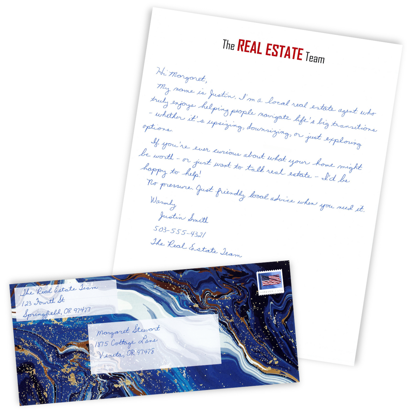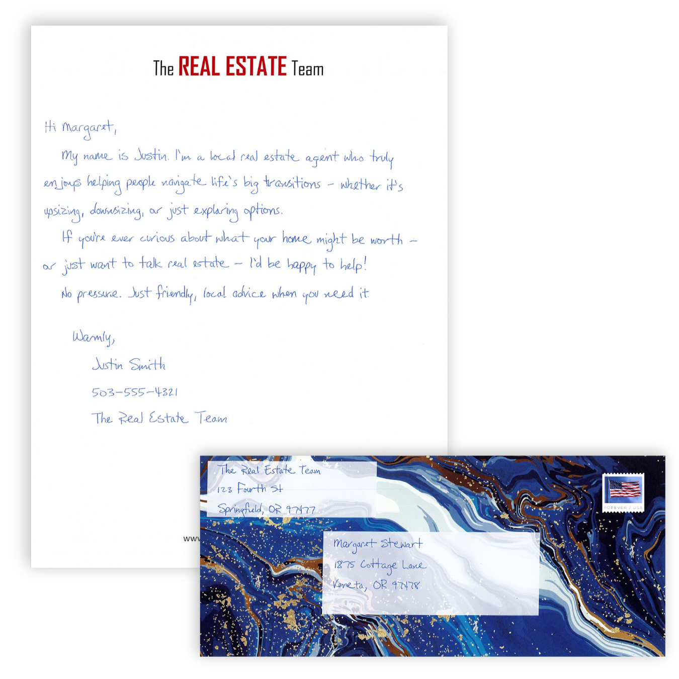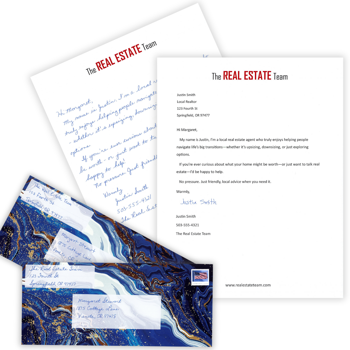 These letters are personal and of high quality. A local postmark ensures your prospects feel like you're one of the community members!