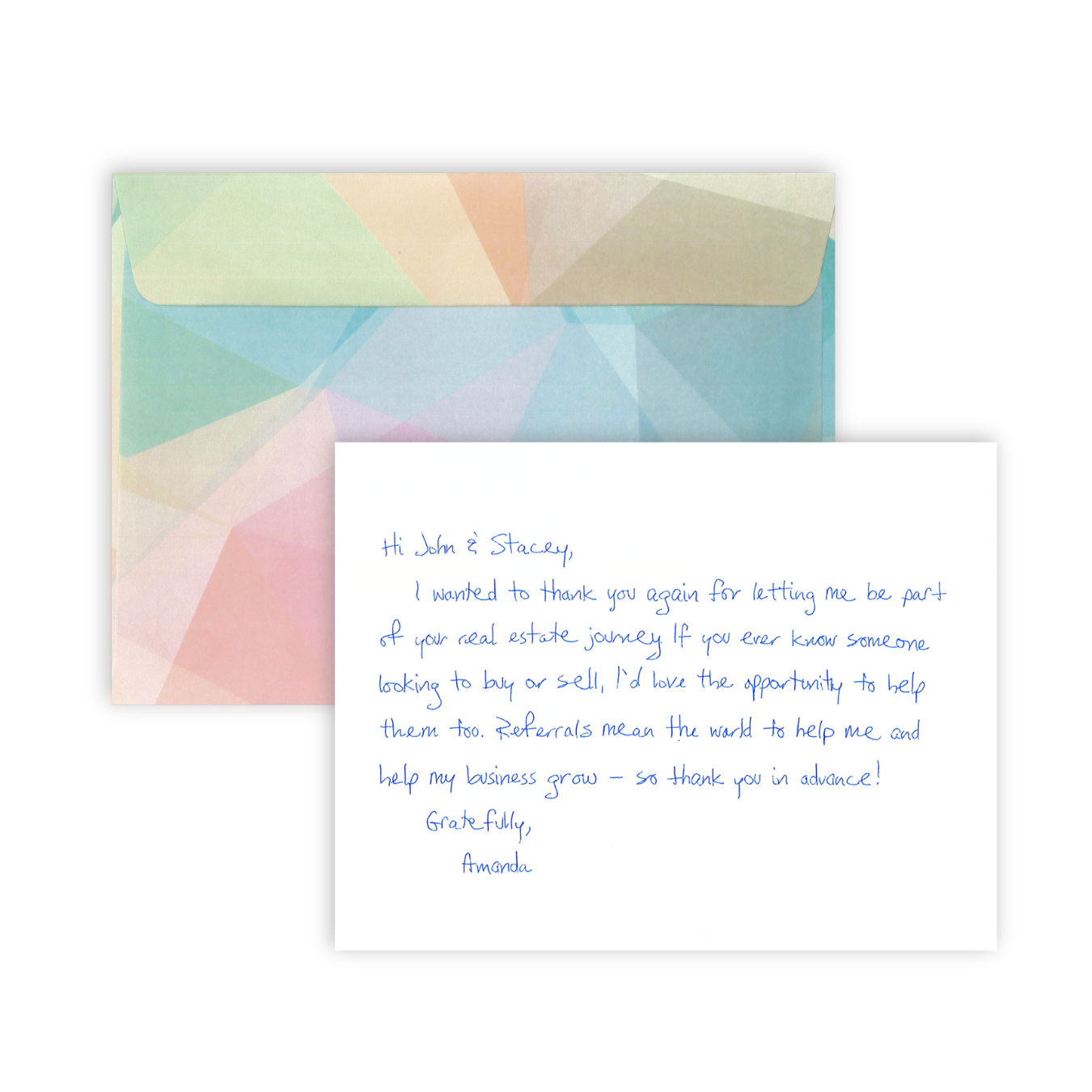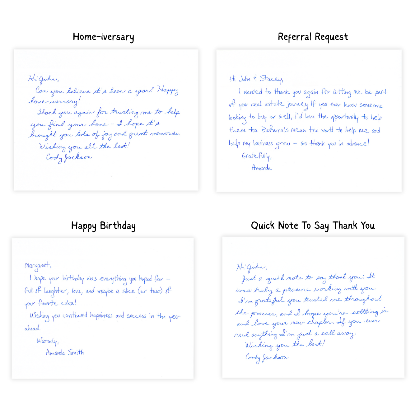 Whether it’s a birthday, a thank you, or just a thoughtful check-in, this handwritten letter helps you keep the connection going long after the first deal.